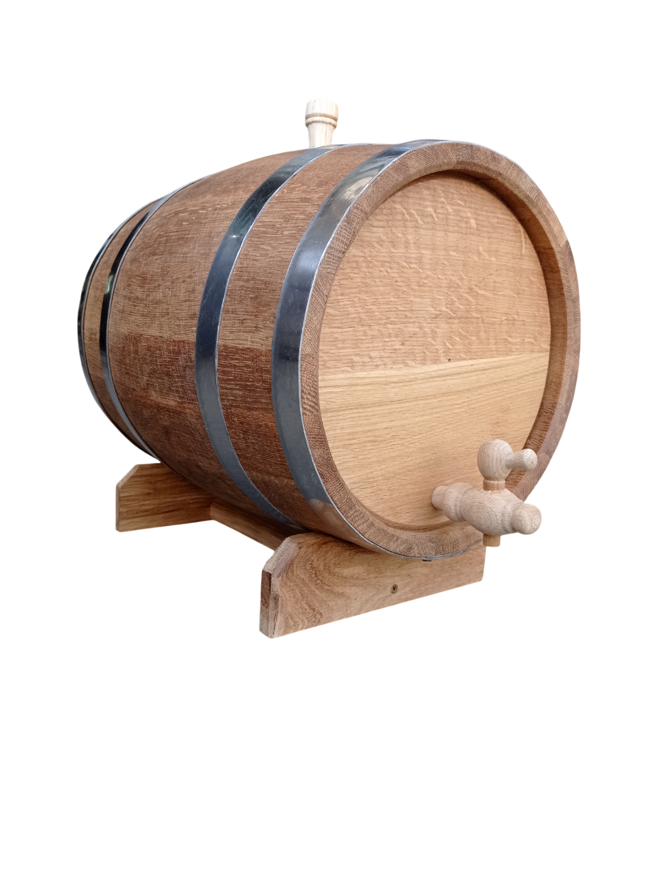 Бочка дубова 5 літрів, з обручем з нержавіючої сталі